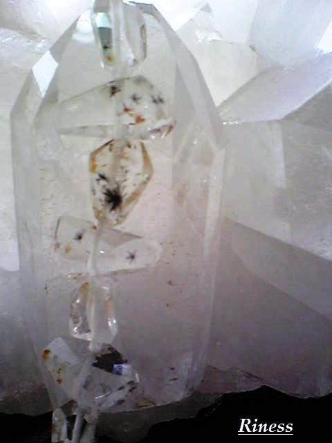 水晶が一度成長を止めたり、成長速度を弱めた後で再び成長を始める時に形成される山型模様(ファントム)の隙間にホランダイトの針状結晶が入り込んで出来るのではないかと言われていますが、まだ正確なところはわかっていません。白いクリスタルの中に浮かぶホランダイトが、まるで星のように愛らしく見えることから「星入り水晶」という名が付いています。
