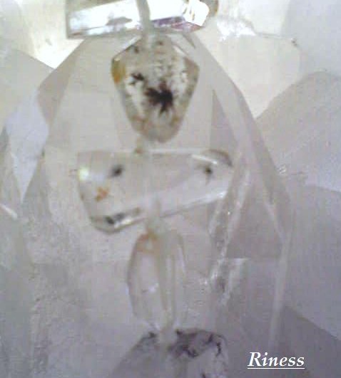 ミルキーな水晶の中に星のようなインクルジョンが入っていますが、これはホランド鉱というマンガン鉱石が入ってできる結晶なのです。